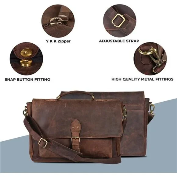 🧿Leather🧿Made in the USA and Imported🧿REAL LEATHER : Oak Leathers messenger bag are MADE IN INDIA products and that comes in various Leather Quality. Oak Leathers manufactures only REAL authentic Leather Porducts which is tanned in India. The Tanning process includes Vegetable Tanning where we use extracts of Oak Bark to make the Leather Softer and rich in Looks.🧿PRACTICAL FEATURES : Comes in ONE_SIZE The laptop bag has three pockets. Two small pockets on the front and back side, one main big pocket. The small pockets can easily hold an iPad and other essential stuffs. The main pocket has a mobile phone holder pouch and short notes / wallet holder. It has a padded laptop holder to keep it steady and hold a laptop of 15.6 inches easily.🧿MULTI USE : This laptop briefcase / messenger bag serves as a multi-purpose bag. It is a bag for school, work, office, college, shopping, camping, travel, fun night outs and all other daily needs.🧿HAND MADE : Masterfully sewed with the finest quality thread and leather brings out the richness and feel of the bag. This laptop bag does make a wonderful gifting item for men and women.